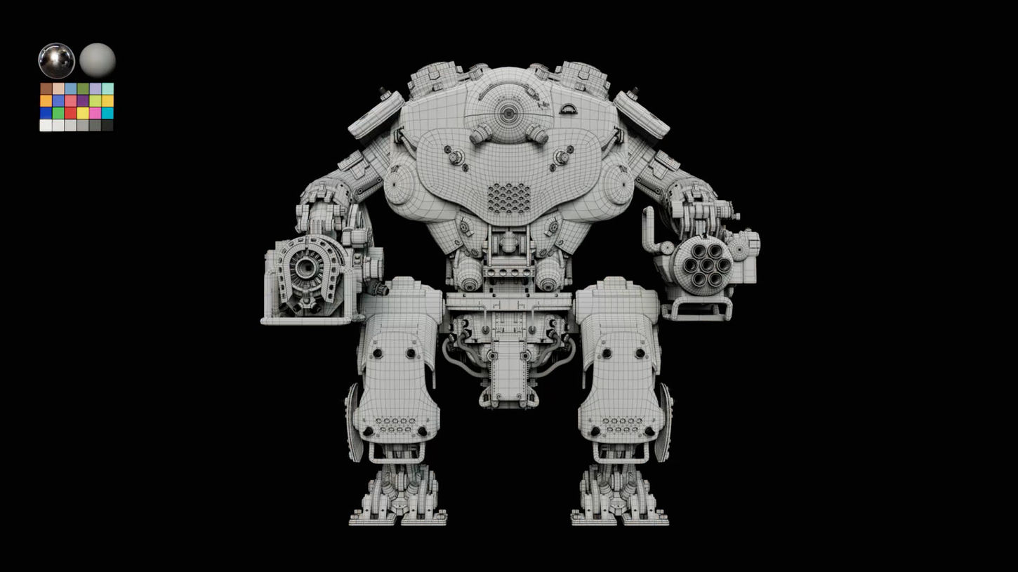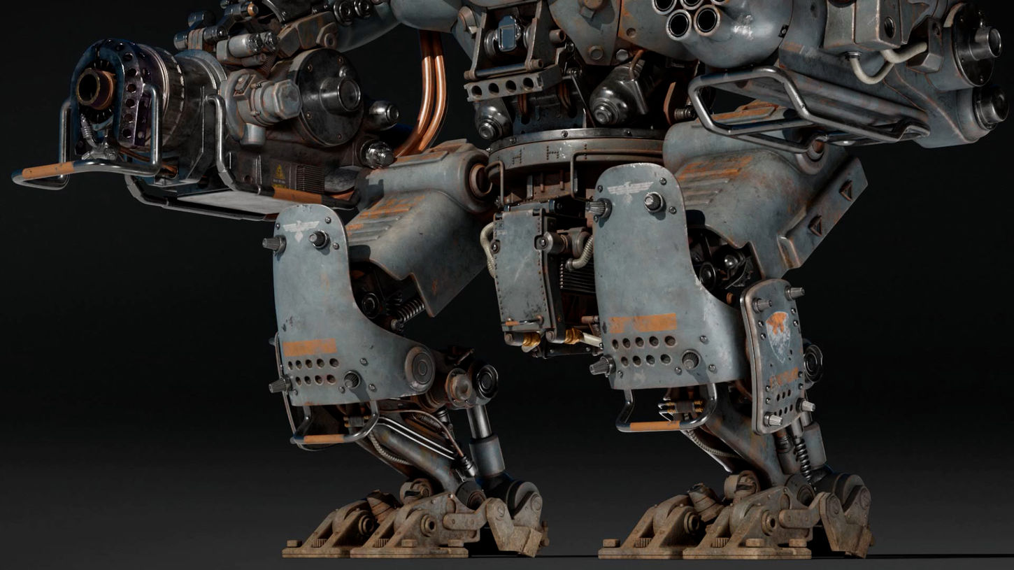 텍스처링 단계에서는 원본 레퍼런스보다 훨씬 시간이 흐른, 녹슬고 노후된 로봇을 표현하는 데 중점을 두었습니다. 각 부위의 재질을 분석하여 다른 방식으로 표현했으며, 노출된 파이프에는 더트가 쌓이고 마모된 질감을, 페인트 표면에는 녹과 벗겨진 페인트 디테일을 추가했습니다. 마지막으로, 표면 위에 먼지가 쌓이도록 레이어를 추가해 시간의 흐름을 느낄 수 있는 분위기를 완성했습니다.